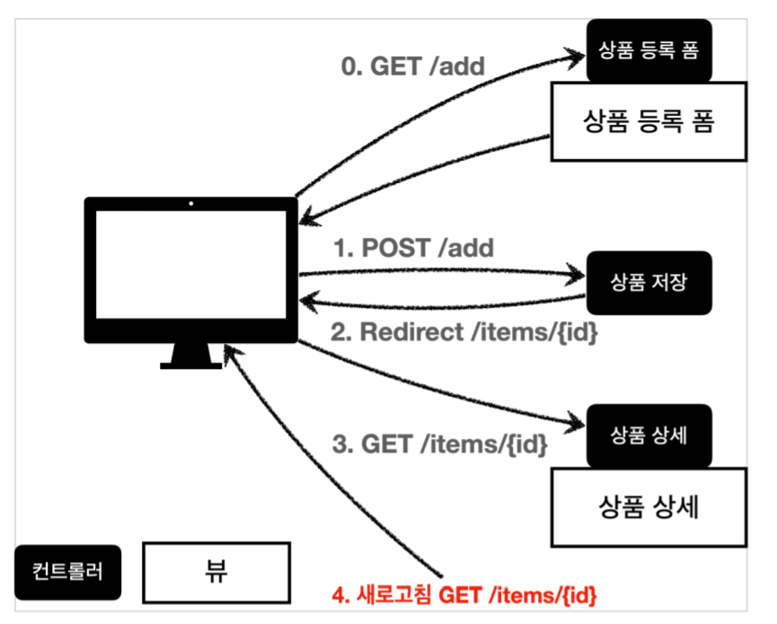 새로 고침 문제를 해결하려면 상품 저장 후에 뷰 템플릿으로 이동하는 것이 아니라, 상품 상세 화면으로 리다이렉트를 호출해주면 된다.