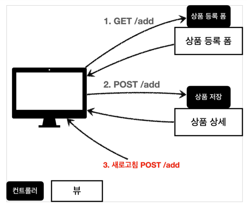 즉 POST 방식으로 상품을 등록하고 새로 고침을 하면 ID만 다른 같은 상품이 등록되는 불상사가 발생한다.
