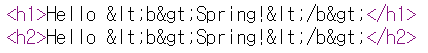 모델에 태그를 포함한 문자열을 담았고, 우리는 <b> 태그를 이용해 Spring!이라는 단어를 진하게 나오게 만들고 싶다.