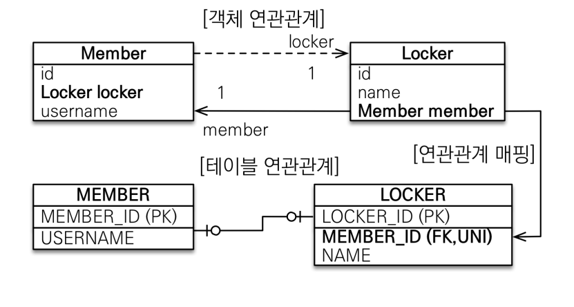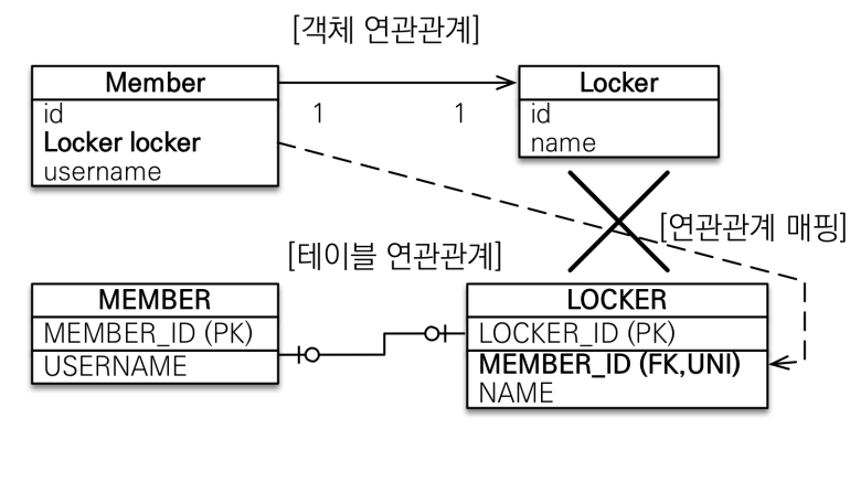 일대일 관계 중 대상 테이블에 외래 키가 있는 단방향 관계는 JPA 지원하지 않는다.