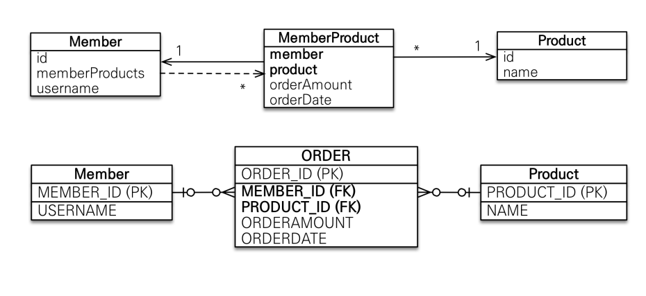 - 전통적인 데이터베이스 개발자들은 보통 대상 테이블에 외래 키를 두는 것을 선호한다.