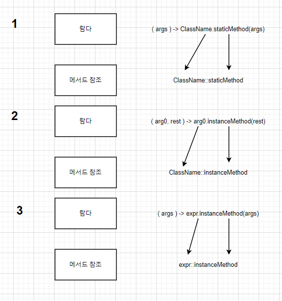 메서드 참조는 세 가지 유형으로 구분할 수 있다.
