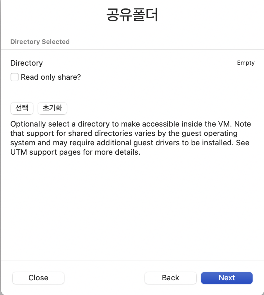 다음 과정 공유 폴더도 디폴트 값으로 주고 넘어갔다.