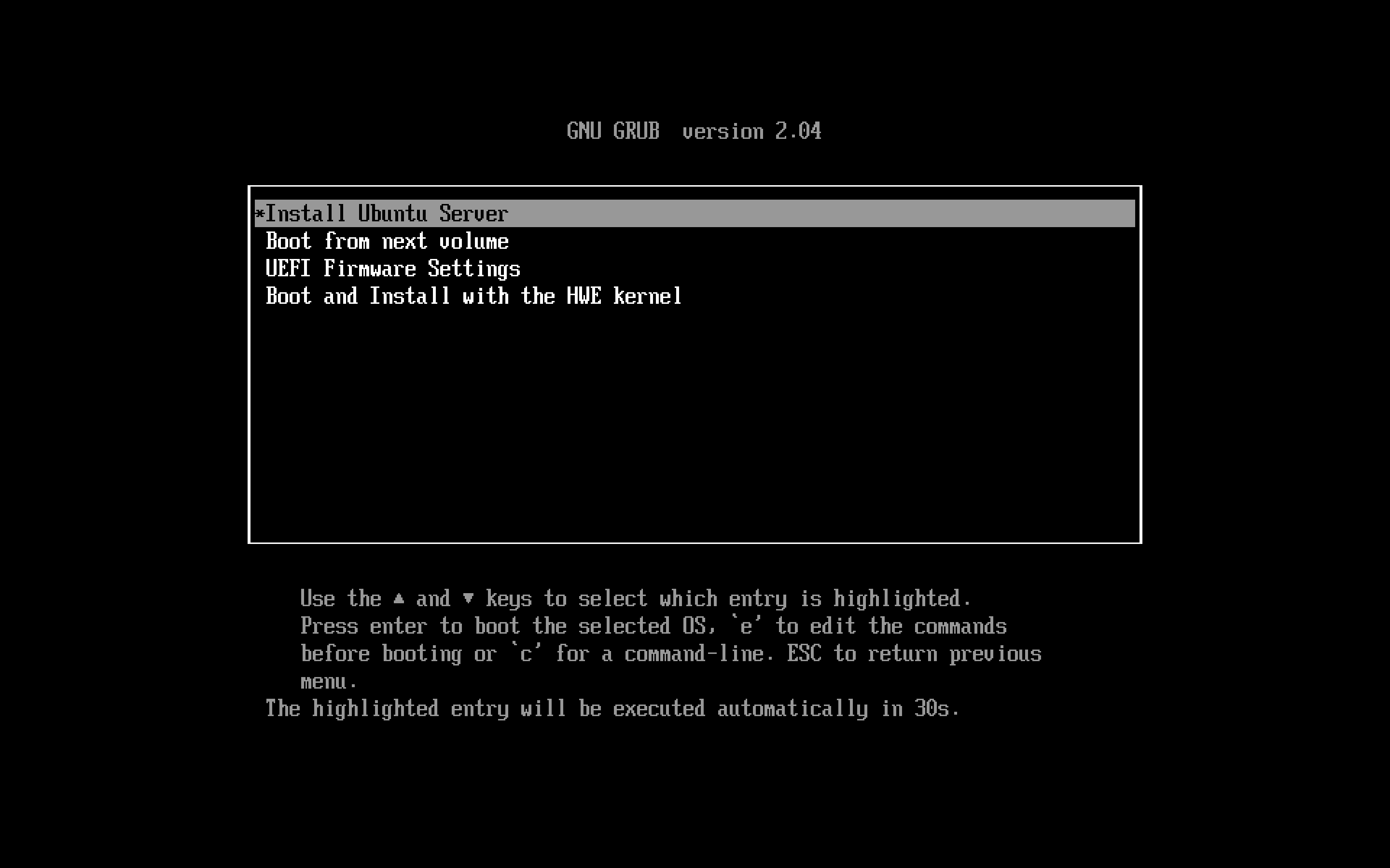 이제 Install Ubuntu Server 라인에서 엔터를 누른다.