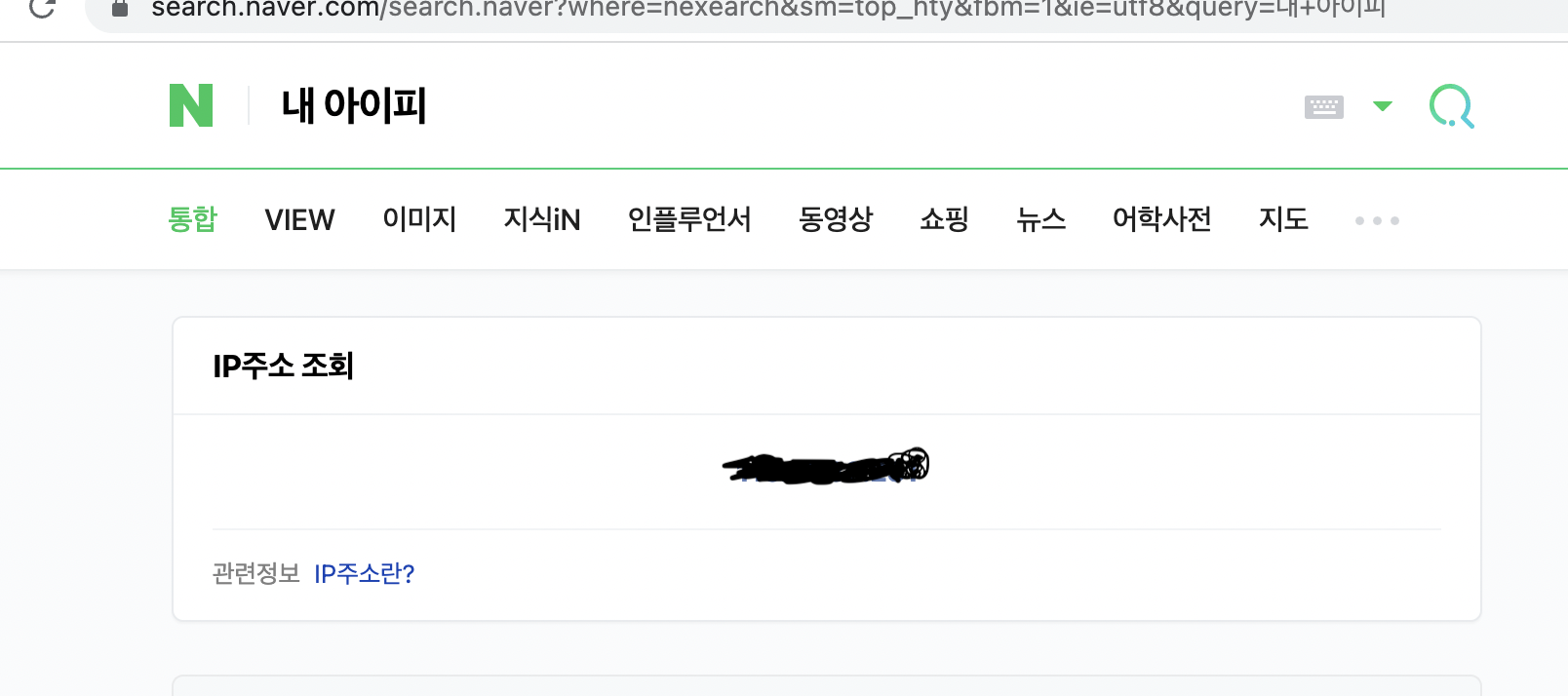 외부 아이피는 네이버에서 내 아이피라고 검색하면 쉽게 알 수 있다.