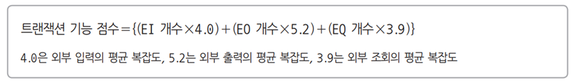 트랜잭션 기능을 측정한다는 것은 외부 입력, 외부 출력, 외부 조회의 횟수를 세는 것이다. 기능 점수에서 트랜잭션 기능의 복잡도는 입력, 출력, 조회의 개수로 결정된다.