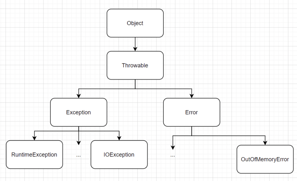 - 예를 들어 존재하지 않는 파일을 입력했다던가, 실수로 클래스의 이름을 잘못 적었다던가, 또는 입력한 데이터 형식이 잘못된 경우에 발생한다.