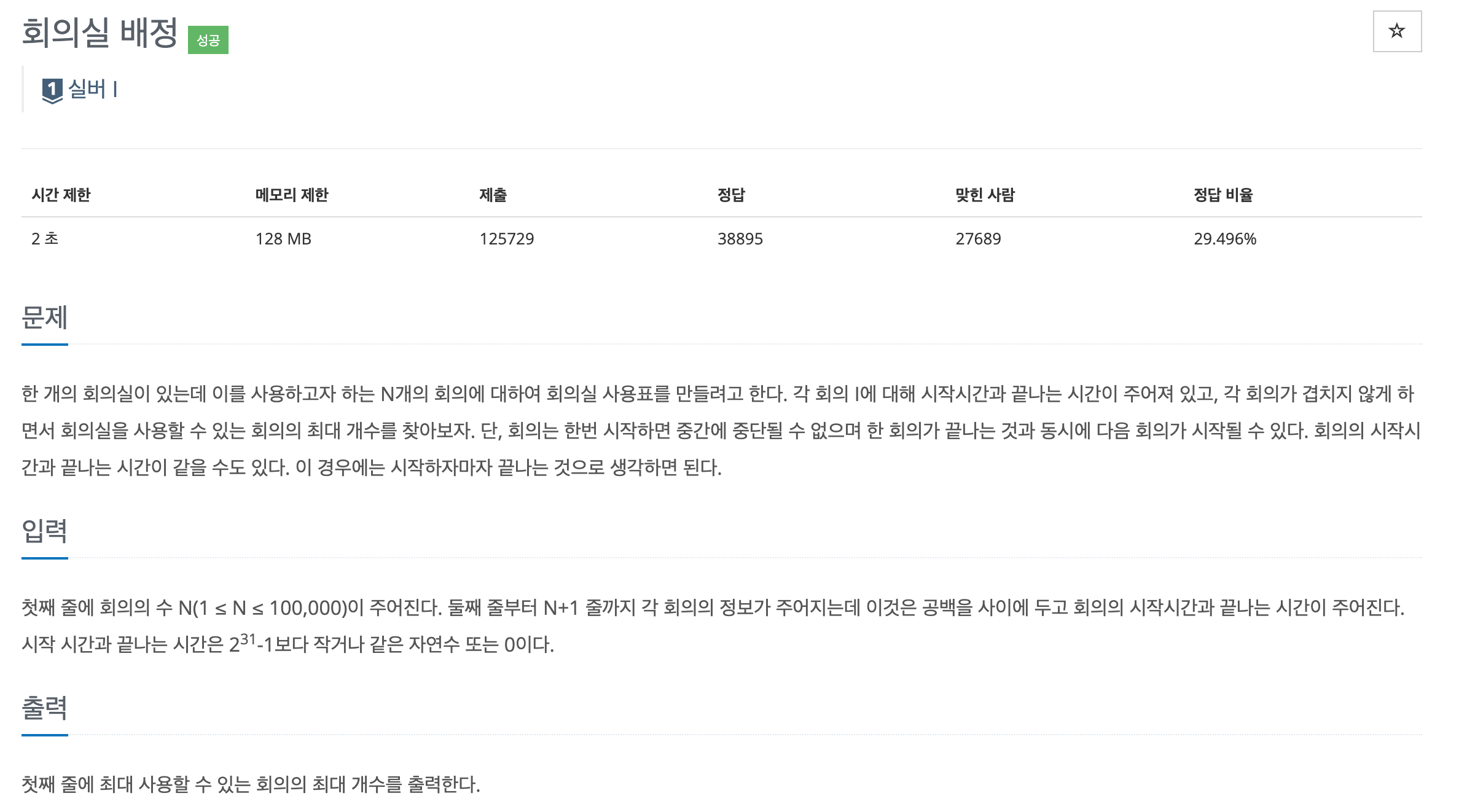 그런데 이게 무슨일인지 모르겠는데, 두 번째 문제가 회의실과 비슷한 문제였다.