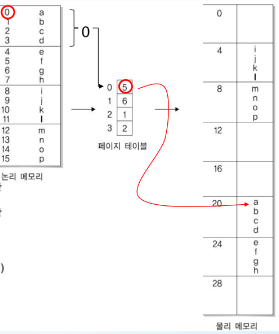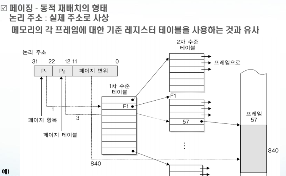 페이징 - 동적 재배치의 형태이다. 논리 주소는 실제 주소를 매핑한다.